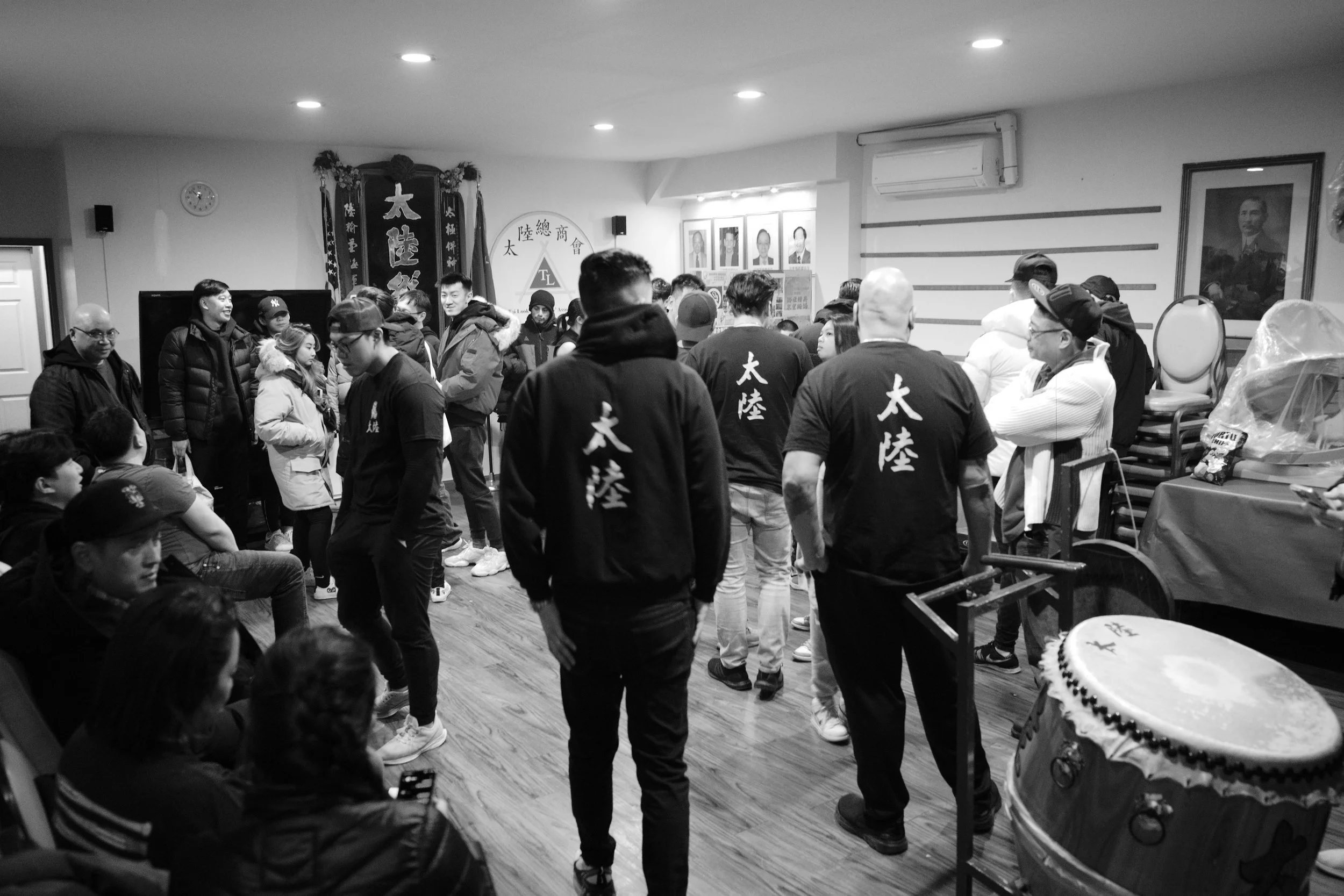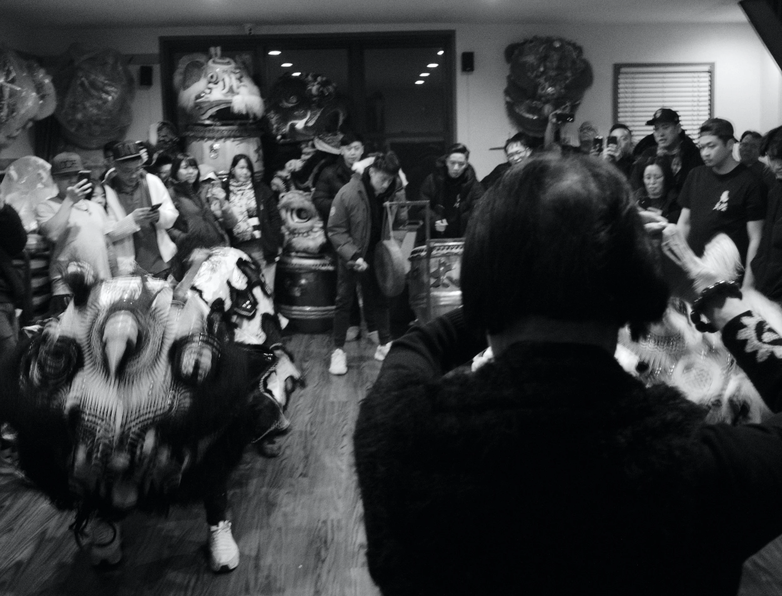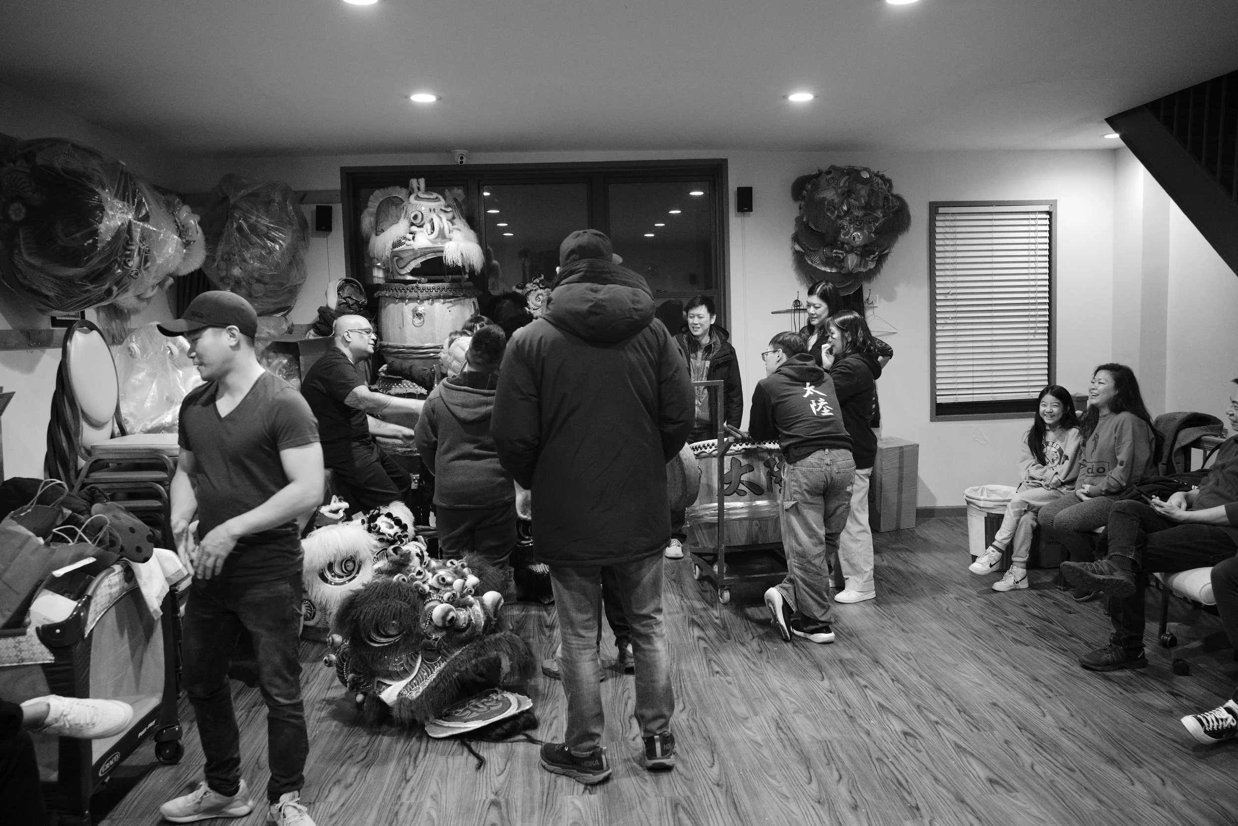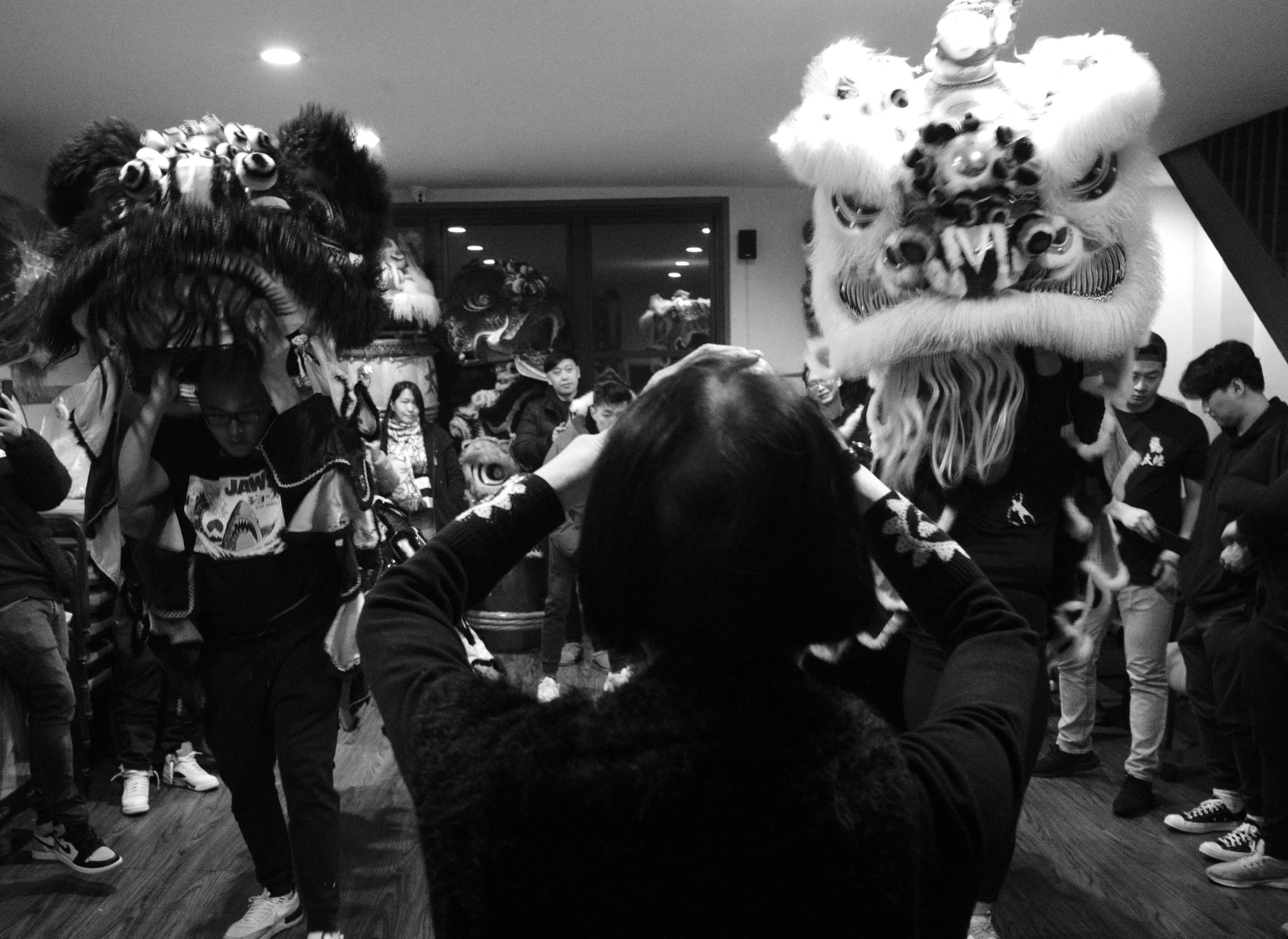 Members of Tai Look Lion Dance and friends / fam gathered in the home base of Tai Look Lion Dance on Chinese New Year’s eve to ring in the NY together. The midnight of Chinese New Year, Saturday 1/21/2023. The view of Chinatown from the walking path side of the Manhattan Bridge you’re able to capture traditional Lion Dancing outside a building located outside on East Broadway. Two lions wake up by the sound of the drums on Chinese New Year. The sound of the drums enlighten everyone’s energy.