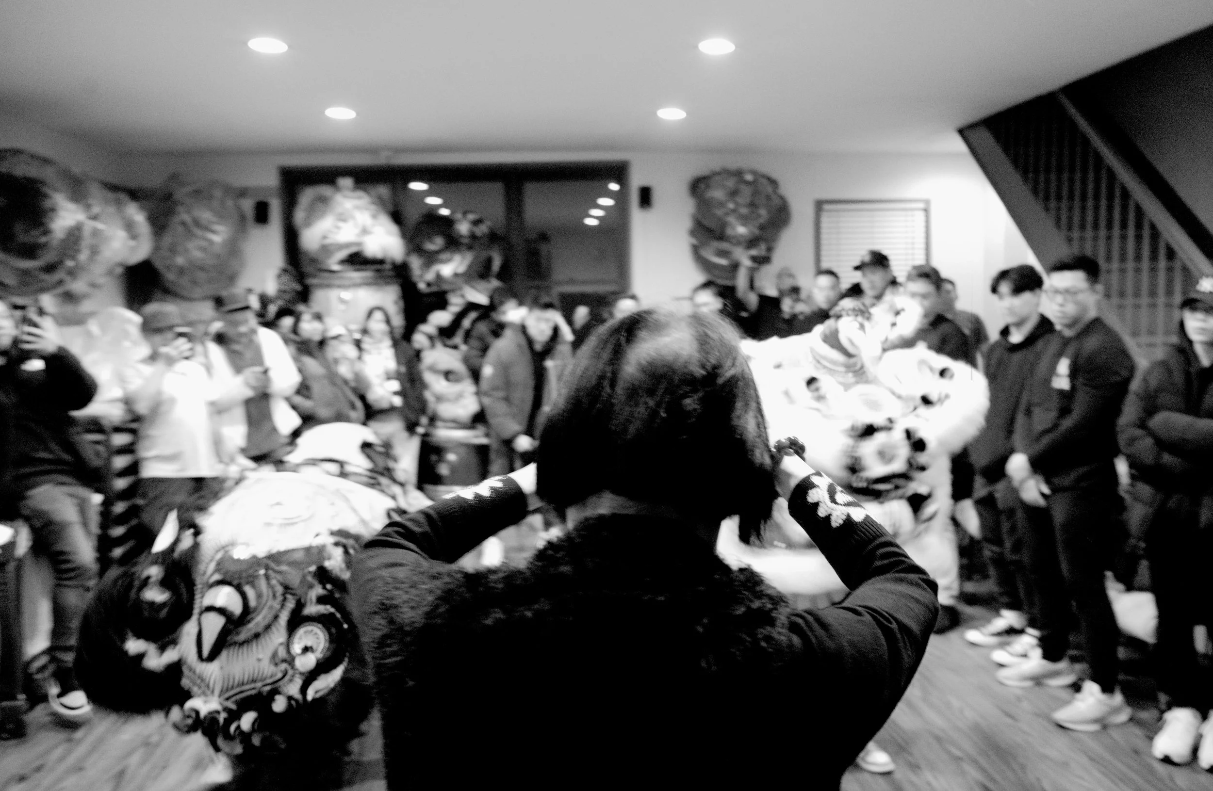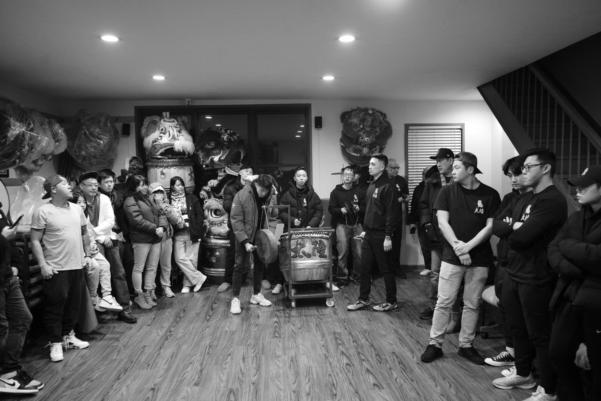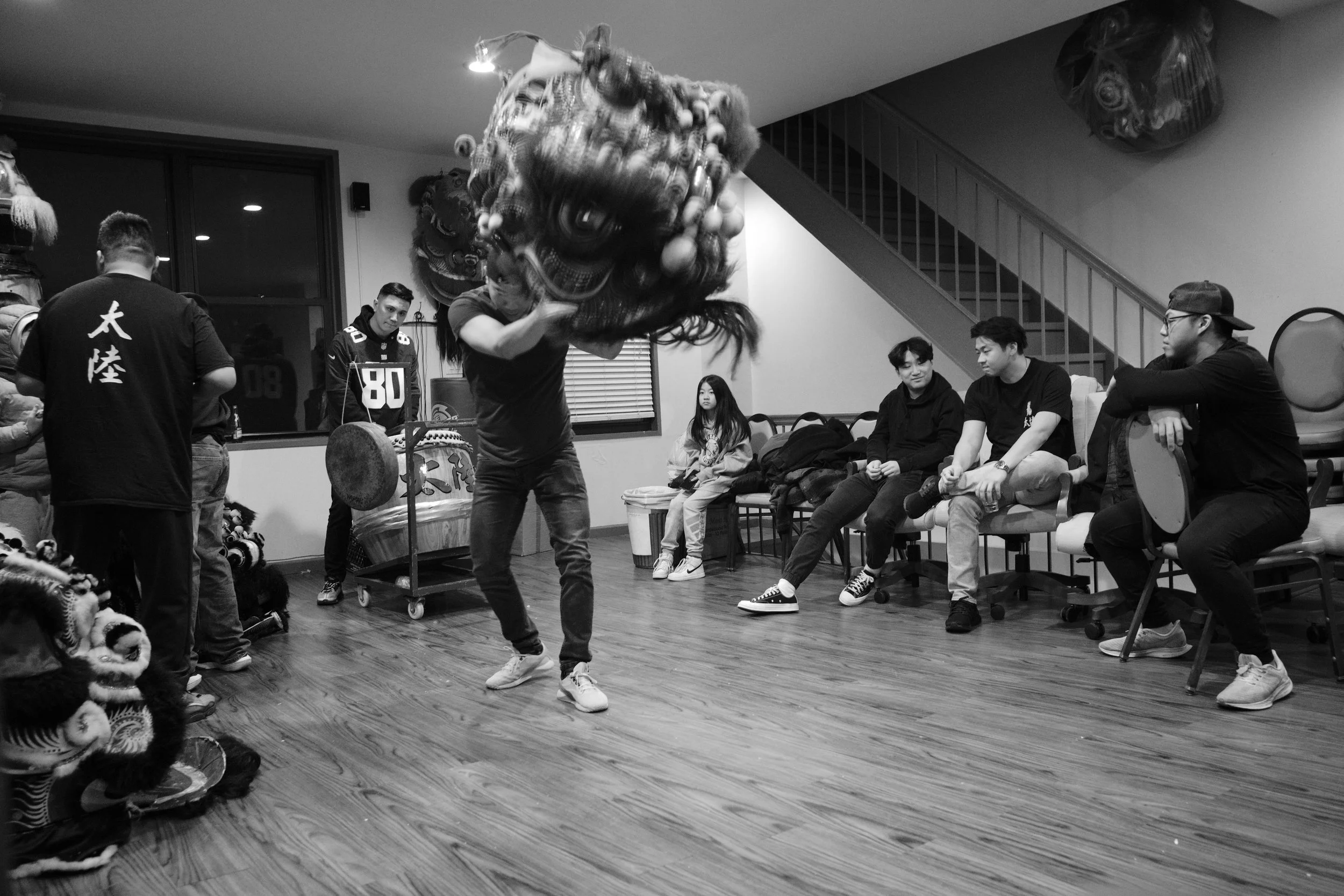 Members of Tai Look Lion Dance and friends / fam gathered in the home base of Tai Look Lion Dance on Chinese New Year’s eve to ring in the NY together. The midnight of Chinese New Year, Saturday 1/21/2023. The view of Chinatown from the walking path side of the Manhattan Bridge you’re able to capture traditional Lion Dancing outside a building located outside on East Broadway. Two lions wake up by the sound of the drums on Chinese New Year. The sound of the drums enlighten everyone’s energy.