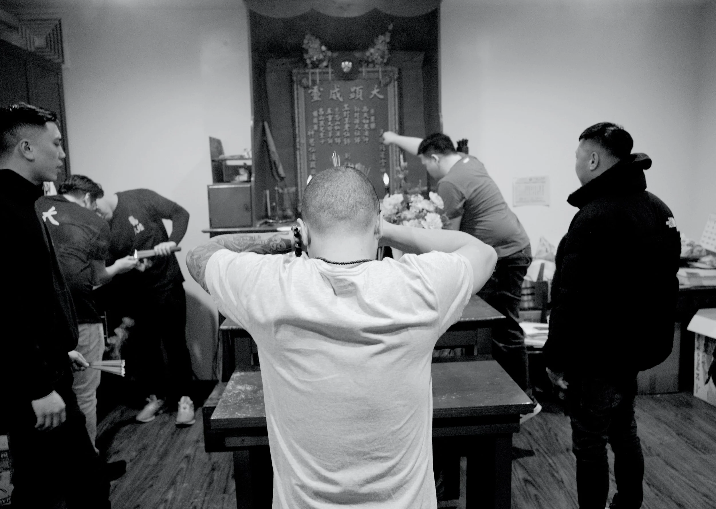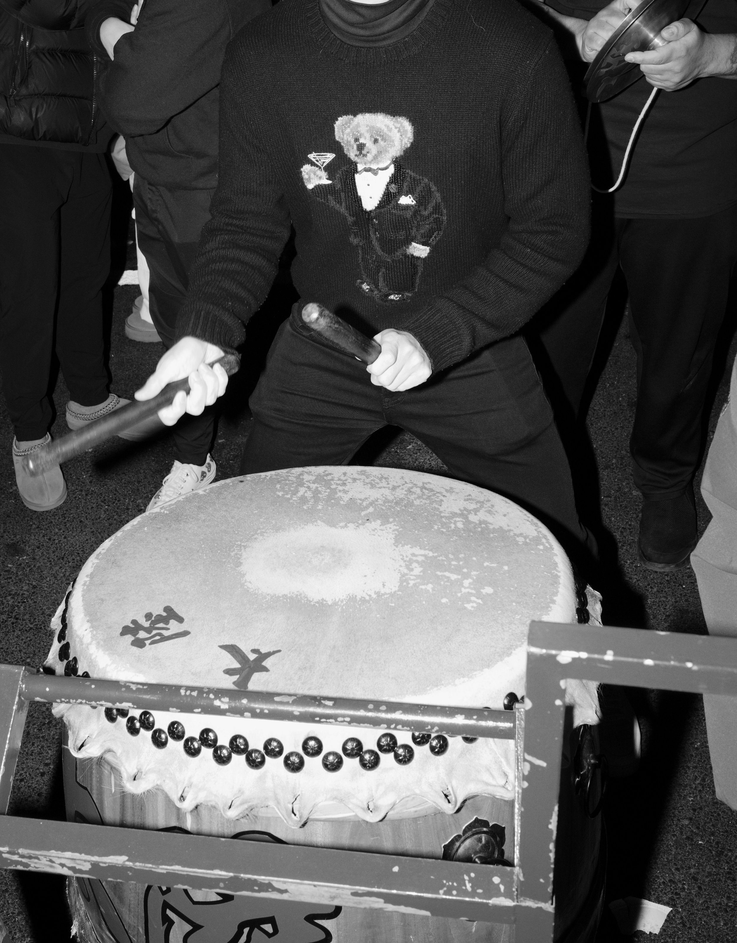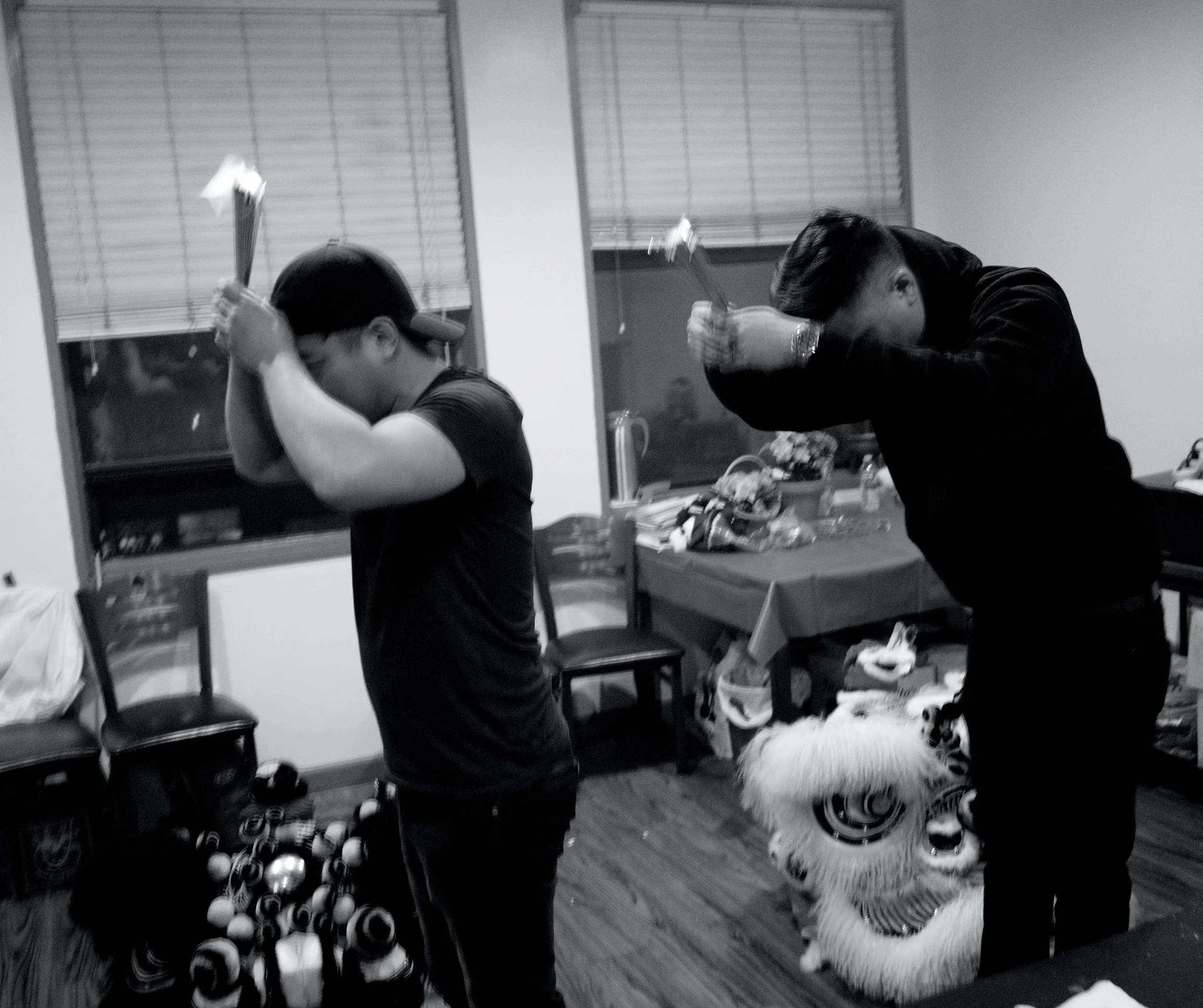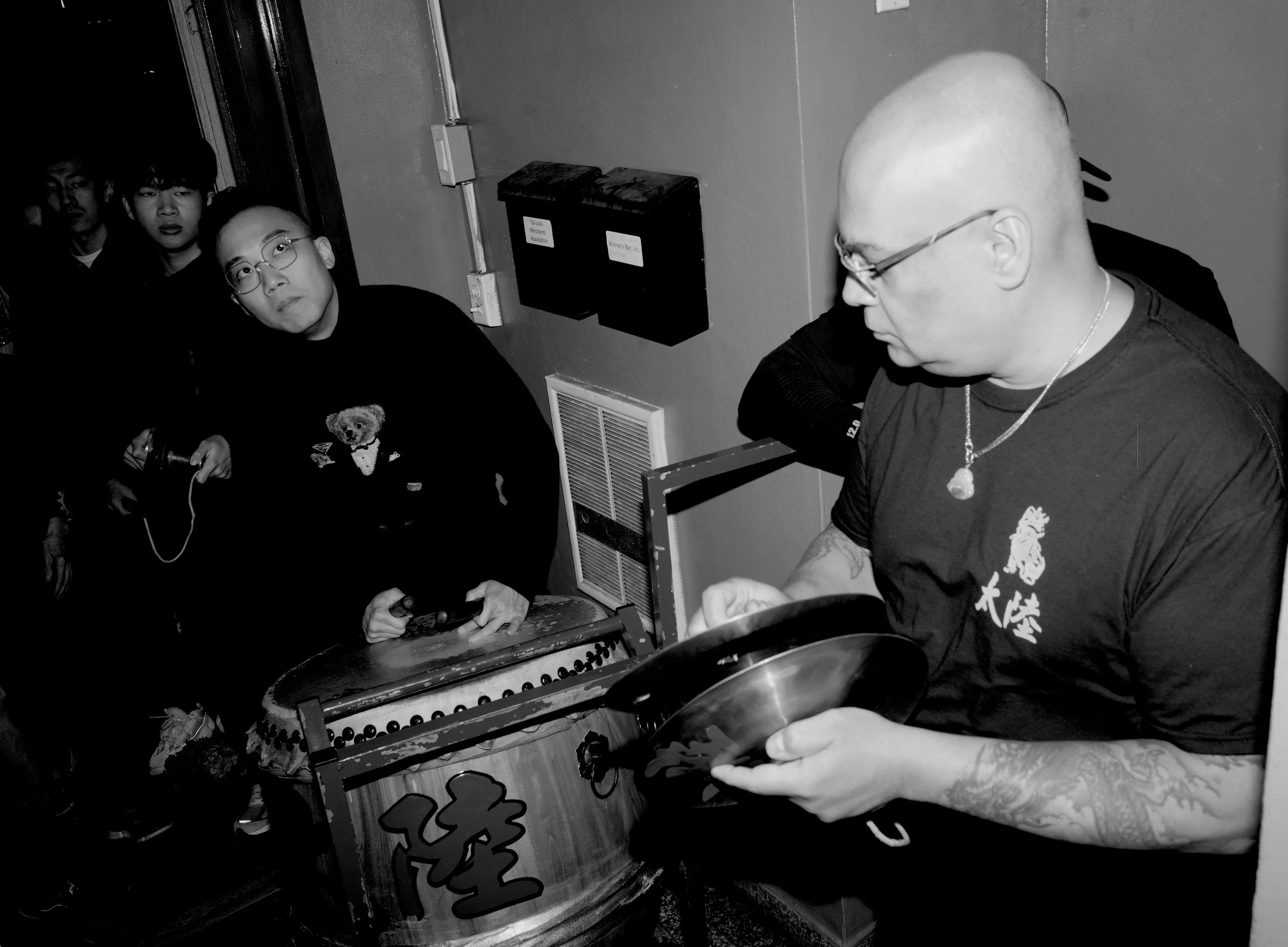 Members of Tai Look Lion Dance and friends / fam gathered in the home base of Tai Look Lion Dance on Chinese New Year’s eve to ring in the NY together. The midnight of Chinese New Year, Saturday 1/21/2023. The view of Chinatown from the walking path side of the Manhattan Bridge you’re able to capture traditional Lion Dancing outside a building located outside on East Broadway. Two lions wake up by the sound of the drums on Chinese New Year. The sound of the drums enlighten everyone’s energy.